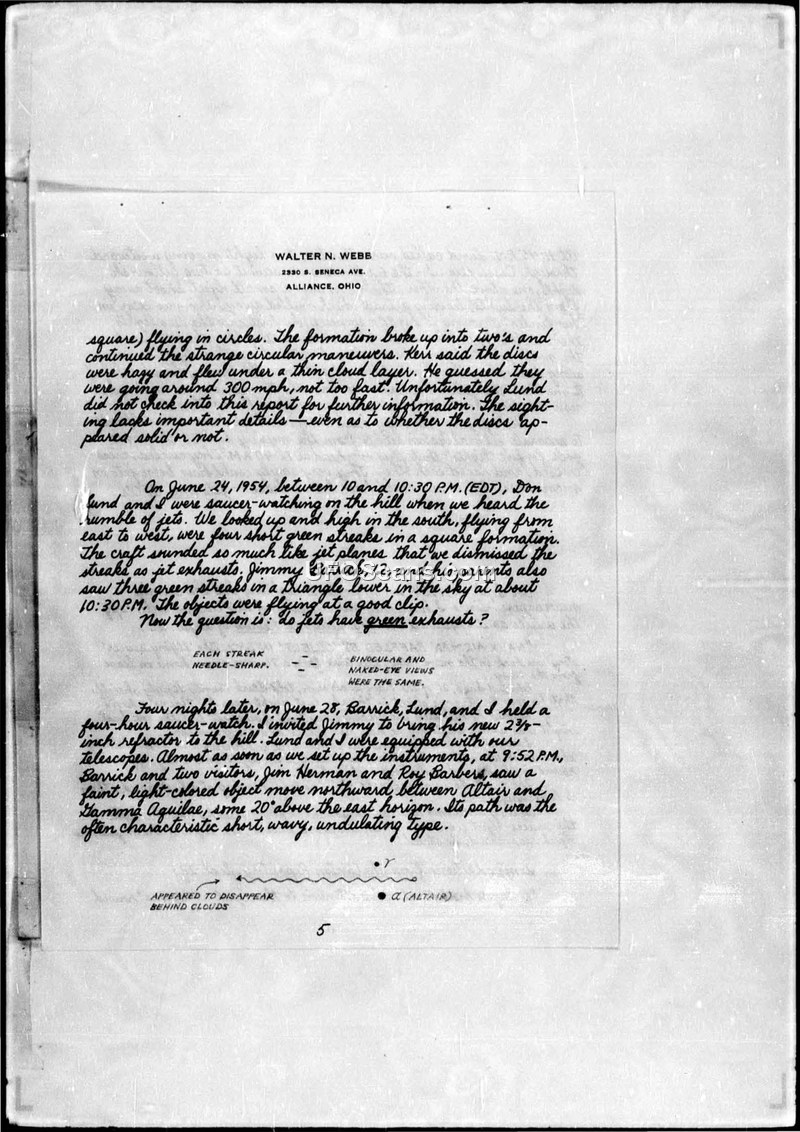 A collection of 1954 UFO sighting reports and letters sent to APRO, documenting diverse aerial phenomena and witness experiences. The reports highlight the prevalence of UFO sightings among the public and the commonality of features like silent flight and rapid acceleration.