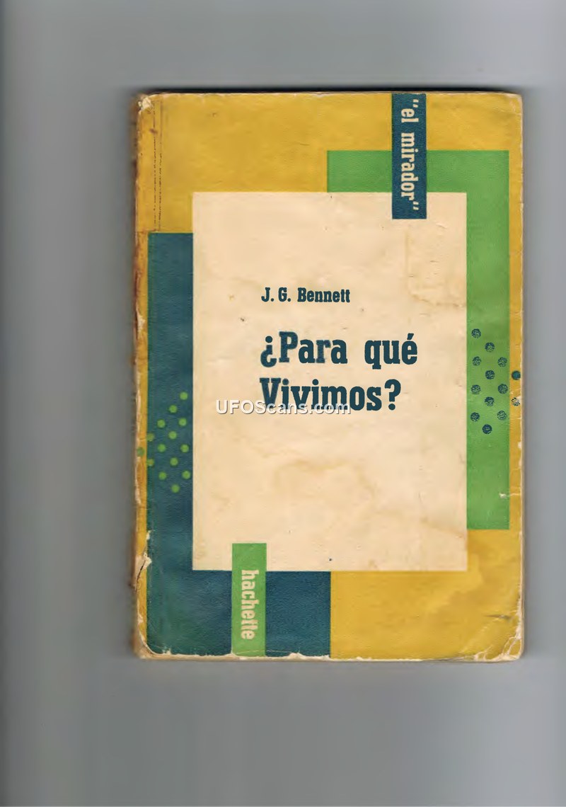 This document is the Spanish translation of J. G. Bennett's work, 'What Are We Living For?', published by Librería Hachette S. A. in Argentina. The text serves as a philosophical critique of contemporary human society, focusing on the disparity between humanity's technological and material advancements and its lack of internal, moral, or spiritual development. Bennett argues that humans are largely 'mechanical' beings, driven by ego, social conditioning, and external pressures rather than genuine self-awareness or independent will. He contends that current educational systems and religious institutions fail to address the core problem of human existence, which is the need for a fundamental change in the 'being' of the individual. The author draws heavily on the ideas of Gurdjieff and Ouspensky, suggesting that the path to a meaningful existence involves moving beyond the 'animal' state of humanity. This requires a conscious, intentional effort to achieve self-observation and to break free from the automatic, conditioned responses that dictate human behavior. Bennett explores the concepts of 'being', the 'three brains' (or centers) of the human organism, and the necessity of developing a true 'I' or 'self' that is capable of independent judgment and action. He warns that without this internal transformation, humanity remains vulnerable to the cycles of destruction, war, and social manipulation. The book concludes that the current state of human affairs is a result of this failure to address the internal life, and that the only way to ensure a better future is through the development of individuals who are truly free and responsible, capable of acting with objective understanding rather than being mere products of their environment.