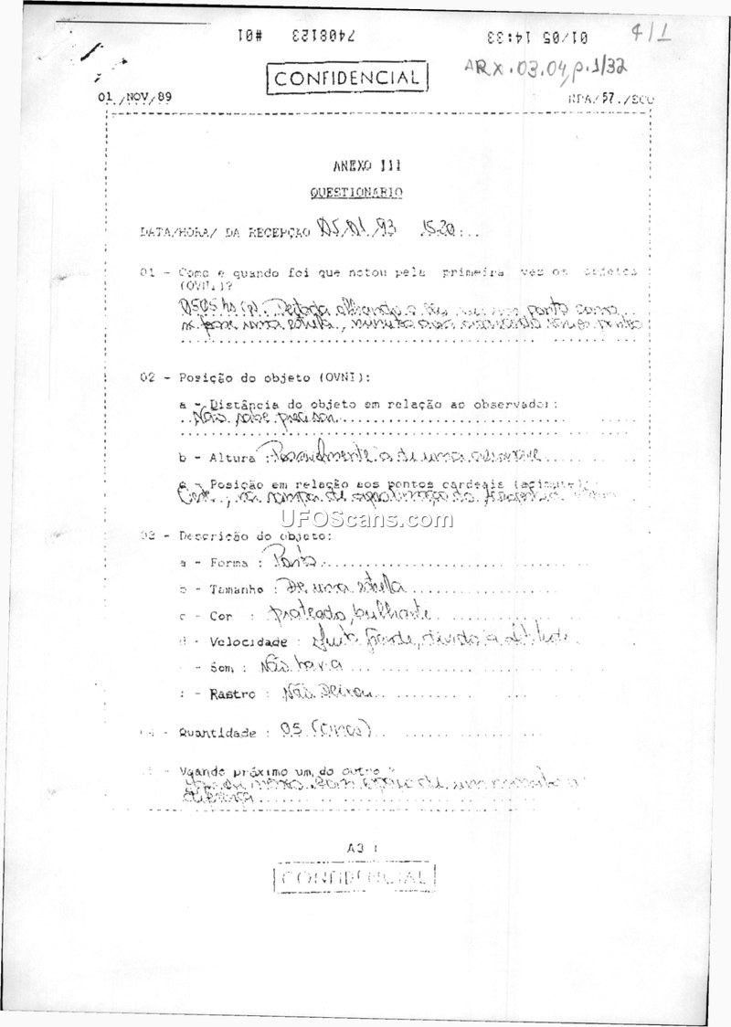 This document is a collection of Brazilian Air Force UAP sighting questionnaires and an official letter from 1993. It highlights the military's difficulty in investigating these phenomena due to the lack of real-time data and the retrospective nature of the reports.