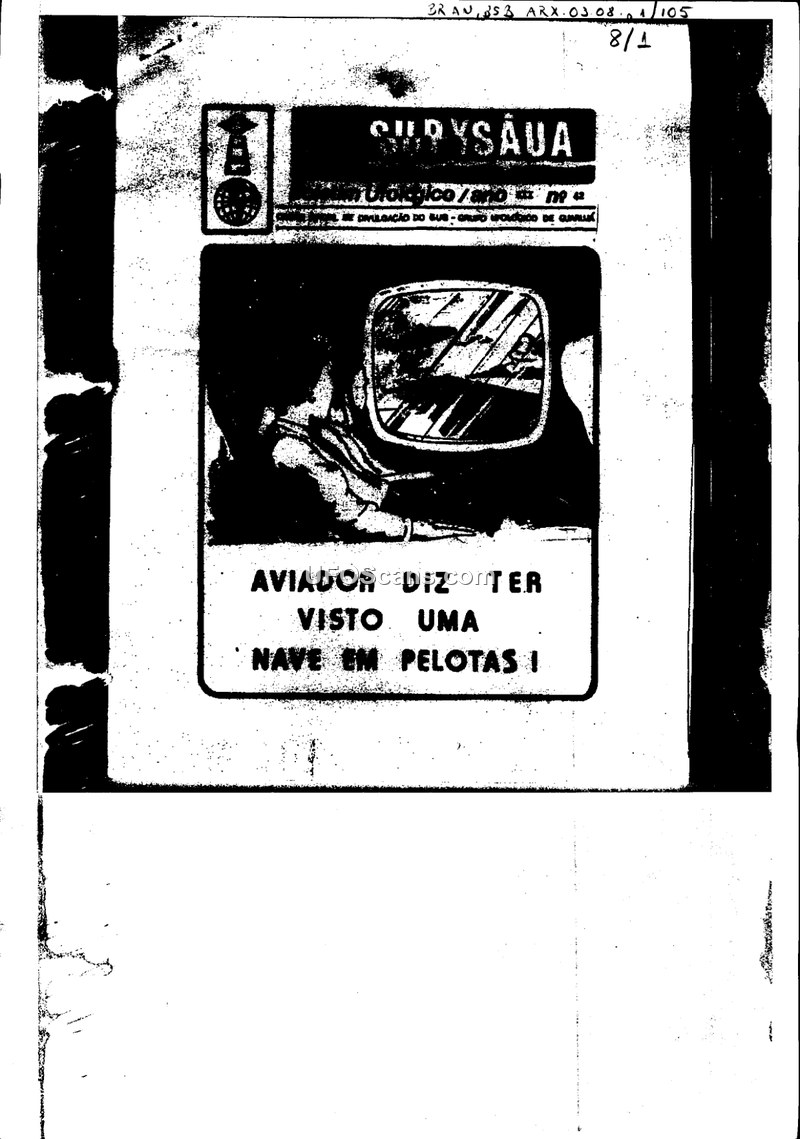 This document is a compilation of materials, including newsletters, press clippings, and official correspondence, primarily focused on Ufological research in Brazil during the mid-1990s. The archive contains multiple issues of the bulletin 'Supysáua', published by the Grupo Ufológico de Guarujá (GUG), which details various sighting reports, including the case of pilot Haroldo Westendorff in Pelotas, RS, in 1996. A significant portion of the document is dedicated to the historical investigation of Ufologists by the Brazilian military regime, specifically the Dops (Departamento de Ordem Política e Social) during the 1970s. These records, uncovered by historian Cláudio Tsuyoshi Suenaga, reveal that the military monitored Ufologists, suspecting them of 'subversive' activities. The document also includes a series of 'OVNI Questionários' (UFO Questionnaires) used by the military to collect data on sightings, often involving pilots and other witnesses. There is extensive correspondence between Ufological groups, such as the GUG and the Academia Brasileira de Paraciências, and the Ministry of Aeronautics, regarding the government's official stance on UFOs. The Ministry consistently denied investigating UFOs, claiming they only archive reports, while Ufologists argue that the military possesses significant data, including radar records and photographic evidence, particularly regarding the 'Operação Prato' and the 1986 'Maciça Casuística' (massive sighting event) in Rio de Janeiro and São Paulo. The document highlights the tension between the Ufological community's desire for transparency and the military's reluctance to acknowledge the phenomenon as a subject of serious scientific or national security interest.