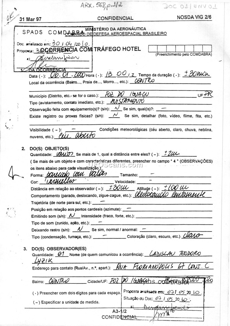 Sighting Incident Report — Foz do Iguaçu, Brazil, January 2000