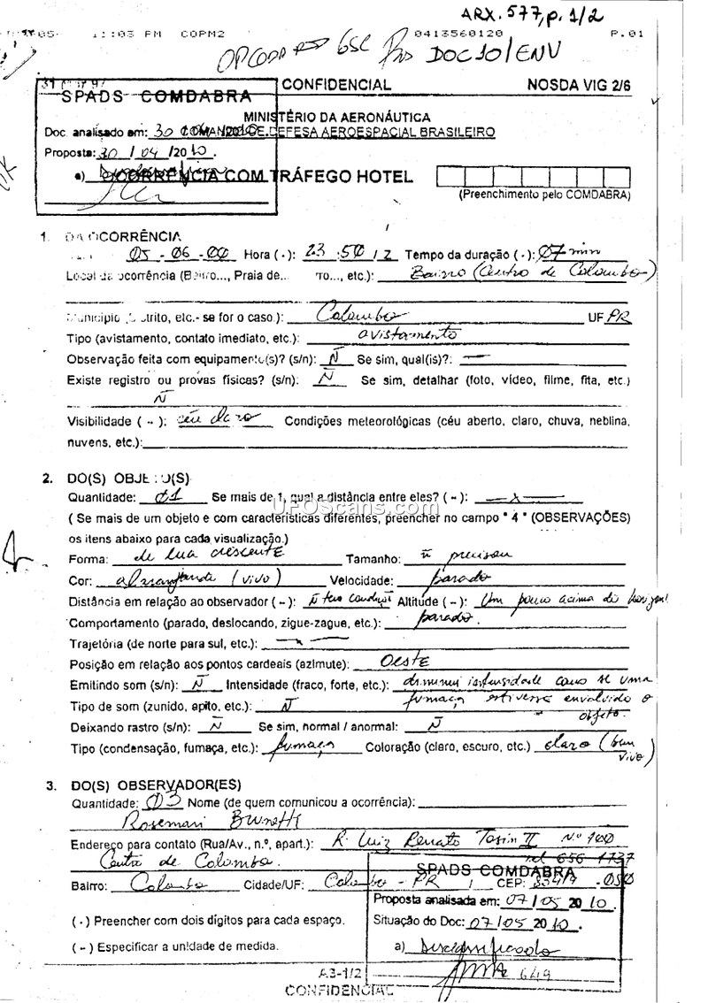 Sighting Incident Report — Colombo, Brazil, June 2000
