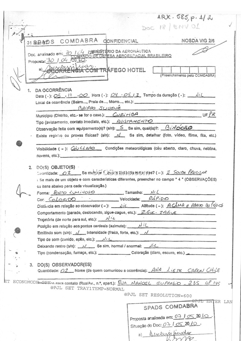 Posteriormente, a D. Ana ligou novamente dizendo que a Aeronáutica não dá a devida atenção para esses casos e que amanhã iria contatar o jornal local 'Gazeta do Povo' para reportar sua história.