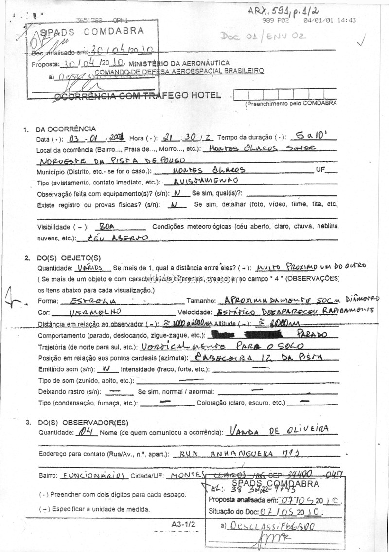 Sighting Incident Report — Montes Claros, Brazil, January 3, 2001
