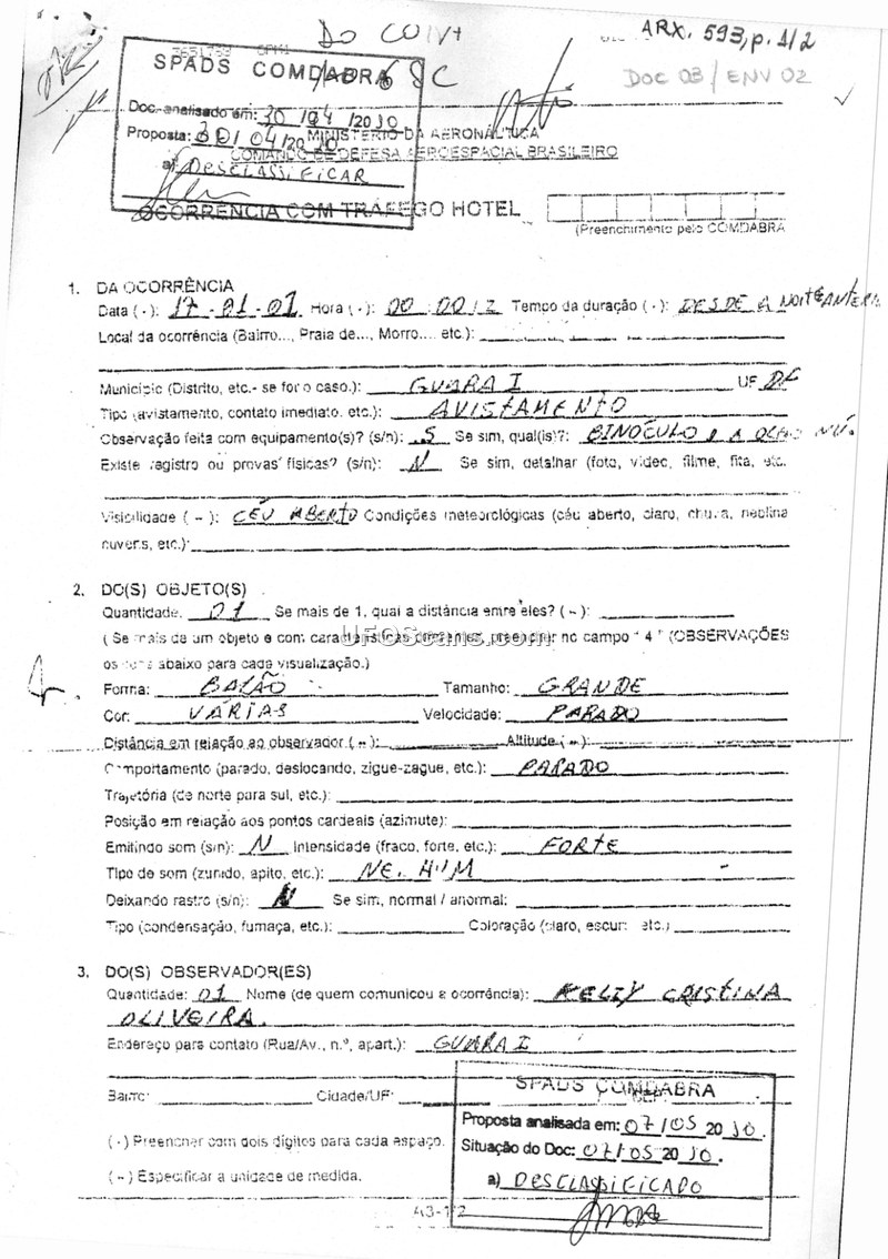 Sighting Incident Report — Guara I, Brazil, January 2001