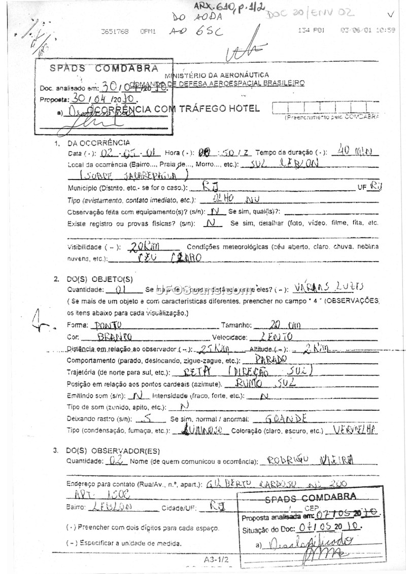 Sighting Incident Report — Rio de Janeiro, Brazil, 2001