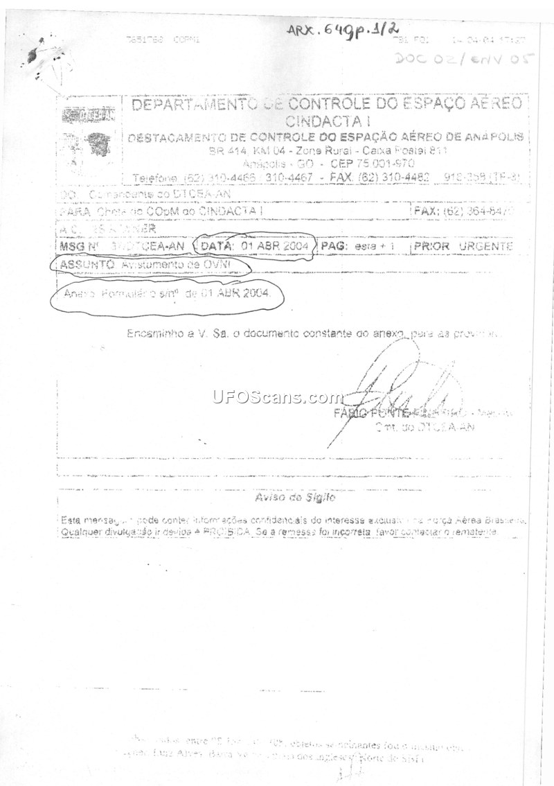 Aviamento de OVNI - 01 ABR 2004
