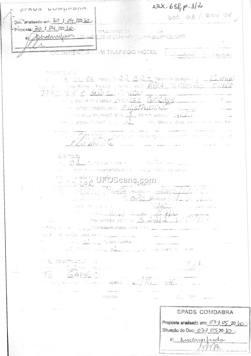 A declassified Brazilian military report documenting a 15-minute sighting of a circular object in Minas Gerais on April 4th at 22:52.