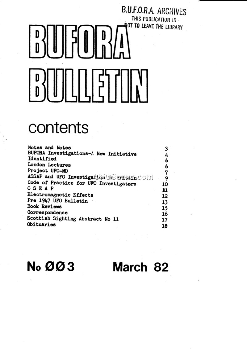 BUFORA Bulletin No. 003