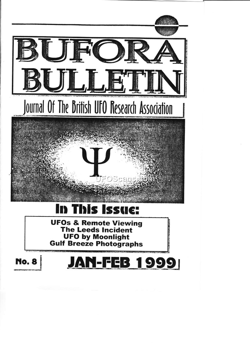 This bulletin documents the 1998 Leeds UFO incident and provides critical analysis of remote viewing claims and the Gulf Breeze photograph controversy. It reflects the British UFO Research Association's 1999 stance on maintaining scientific rigor in ufological investigations.