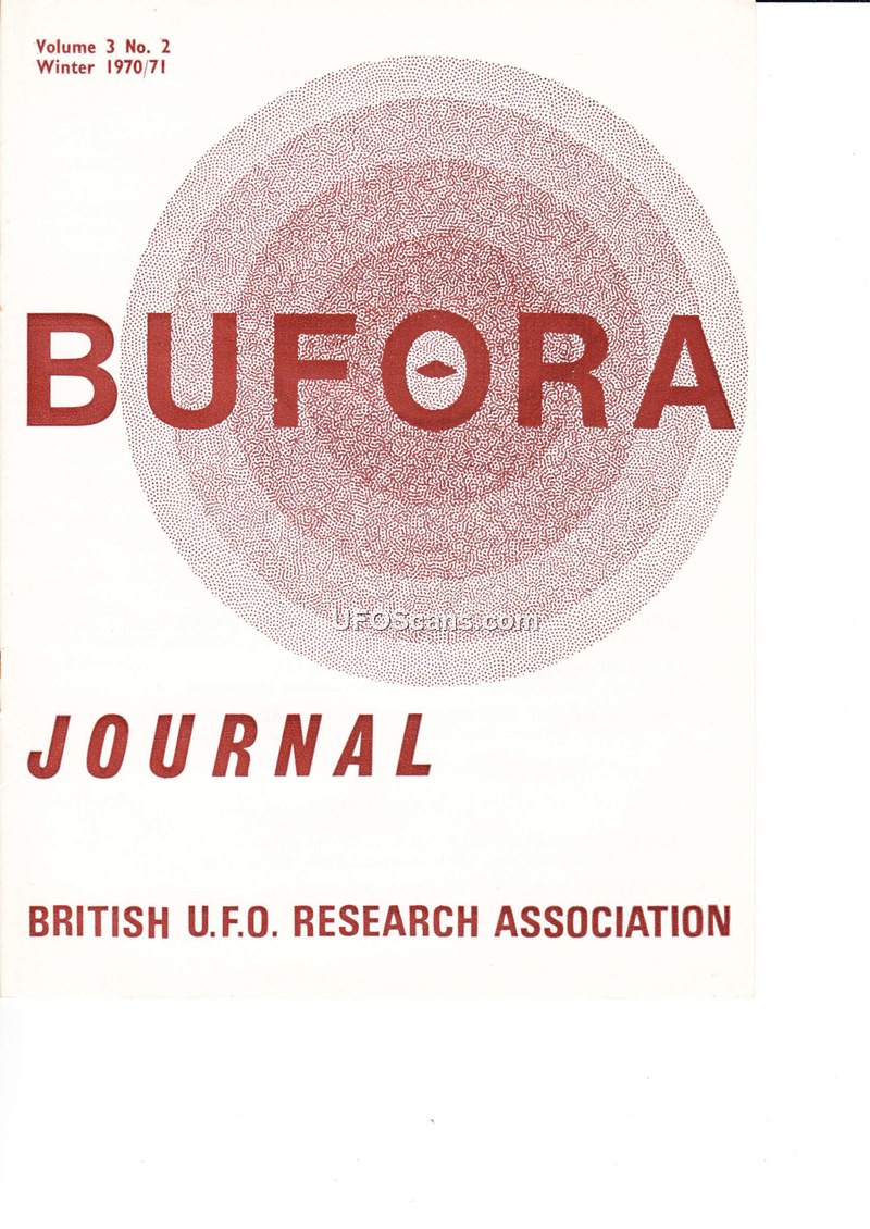 This BUFORA Journal issue from Winter 1970/71 documents the association's internal debates regarding research methodology, the inclusion of 'Fortean' phenomena, and critical reviews of contemporary UFO literature. It highlights the organization's shift toward a more scientific, evidence-based approach while maintaining its role as a central hub for British UFO research.