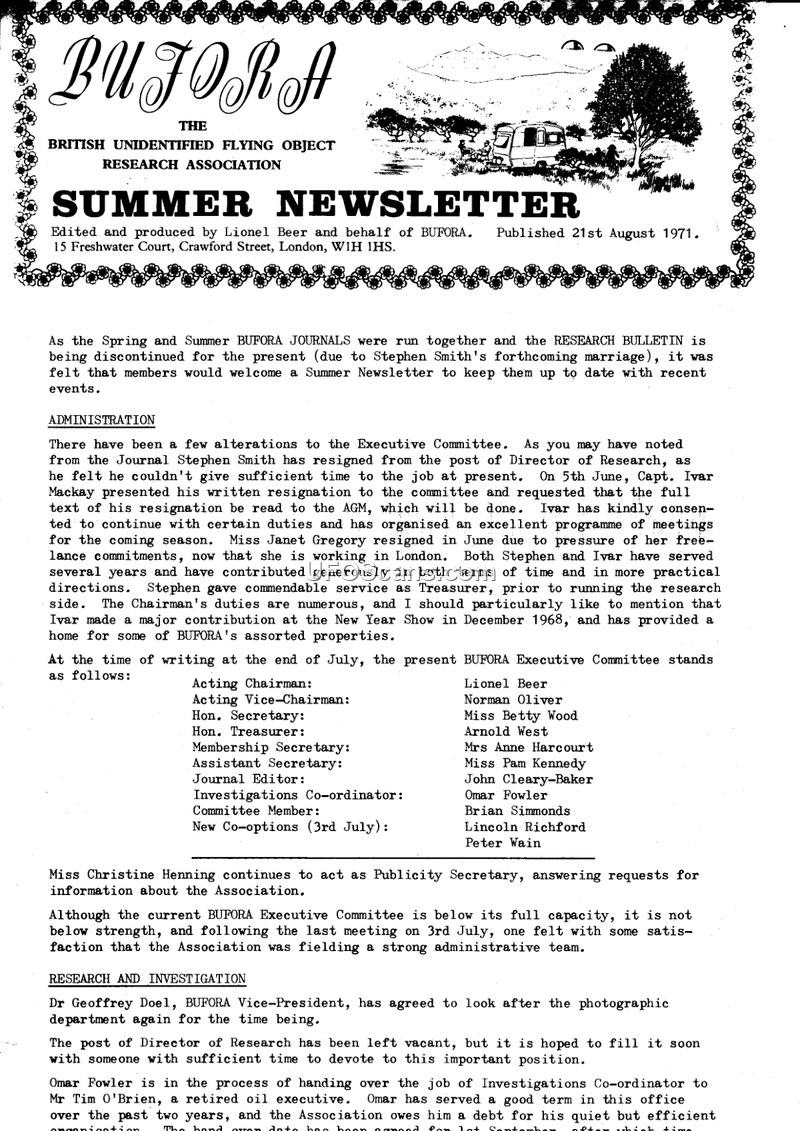 BUFORA Summer Newsletter, August 1971