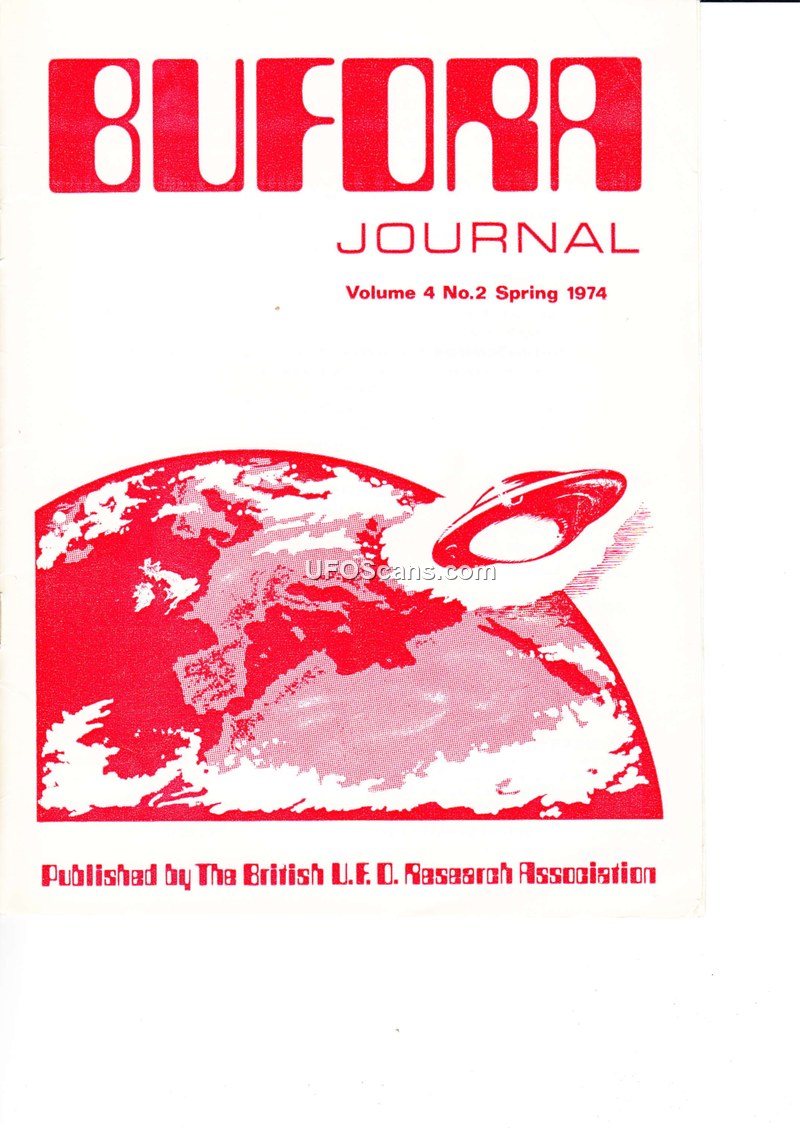 This document is the Spring 1974 issue (Volume 4, No. 2) of the BUFORA Journal, published by the British Unidentified Flying Object Research Association. It serves as a compilation of sighting reports, research methodologies, and editorial commentary regarding UAP phenomena. The journal includes an editorial by N. T. Oliver discussing the inclusion of 'Fortean' phenomena, such as monsters and telekinesis, within the scope of UFO investigation. A significant portion of the journal is dedicated to the 'Flintshire UFOs' reported in 1970, which involved sightings near the Afon-wen TV mast and a mysterious encounter with a van and a 'radio ham.' Another report details a series of sightings by nine boys in Kera Village, Kochi, Japan, involving a small metallic disc. The journal also covers the case of Eddie Webb, a truck driver in Missouri who claimed to be blinded by a fireball in 1973, with subsequent analysis by Dr. Harley Rutledge. The publication outlines BUFORA's investigative procedures, categorizing cases into three types based on the quality of physical evidence, and provides advice on safety precautions for investigators, such as the use of Geiger counters and protective gear. Correspondence from readers explores various theories, including the 'galactic wrong number' hypothesis, the 'hollow earth' concept, and the potential for parallel dimensions. The journal also features book reviews, a UFO quiz, and updates on various regional UFO research groups, emphasizing the association's commitment to unbiased scientific investigation while acknowledging the diverse and often speculative nature of the field.