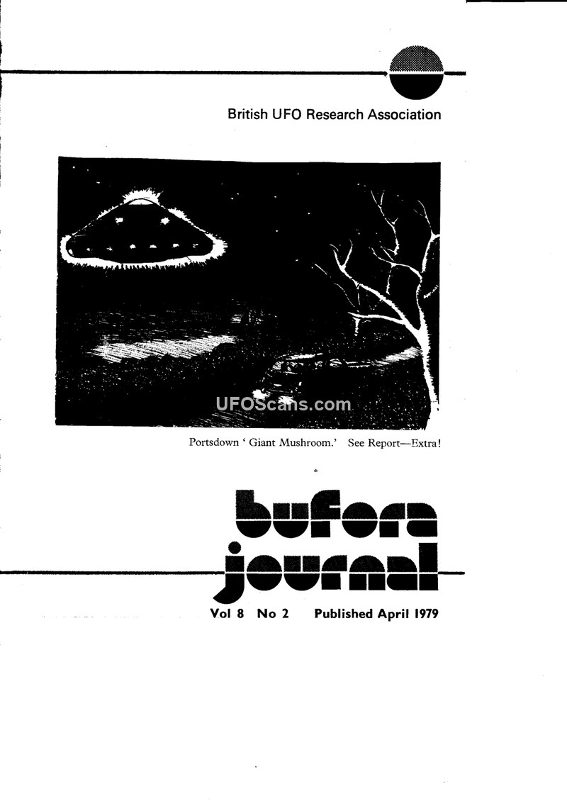 This is the April 1979 issue of the BUFORA Journal, containing a collection of UFO sighting reports, investigative articles, and organizational updates. It highlights the association's ongoing research efforts and provides a comprehensive list of historical sighting data.