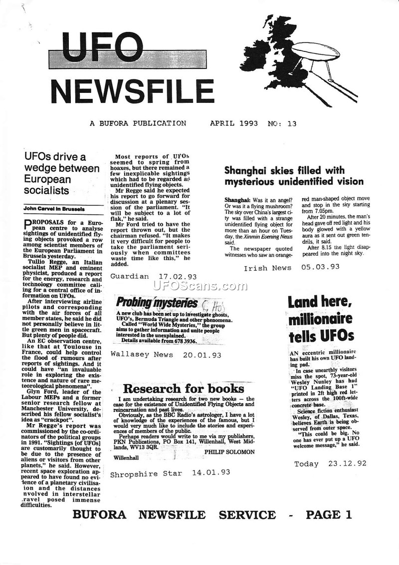 UFO NEWSFILE: A BUFORA PUBLICATION, APRIL 1993, NO. 13