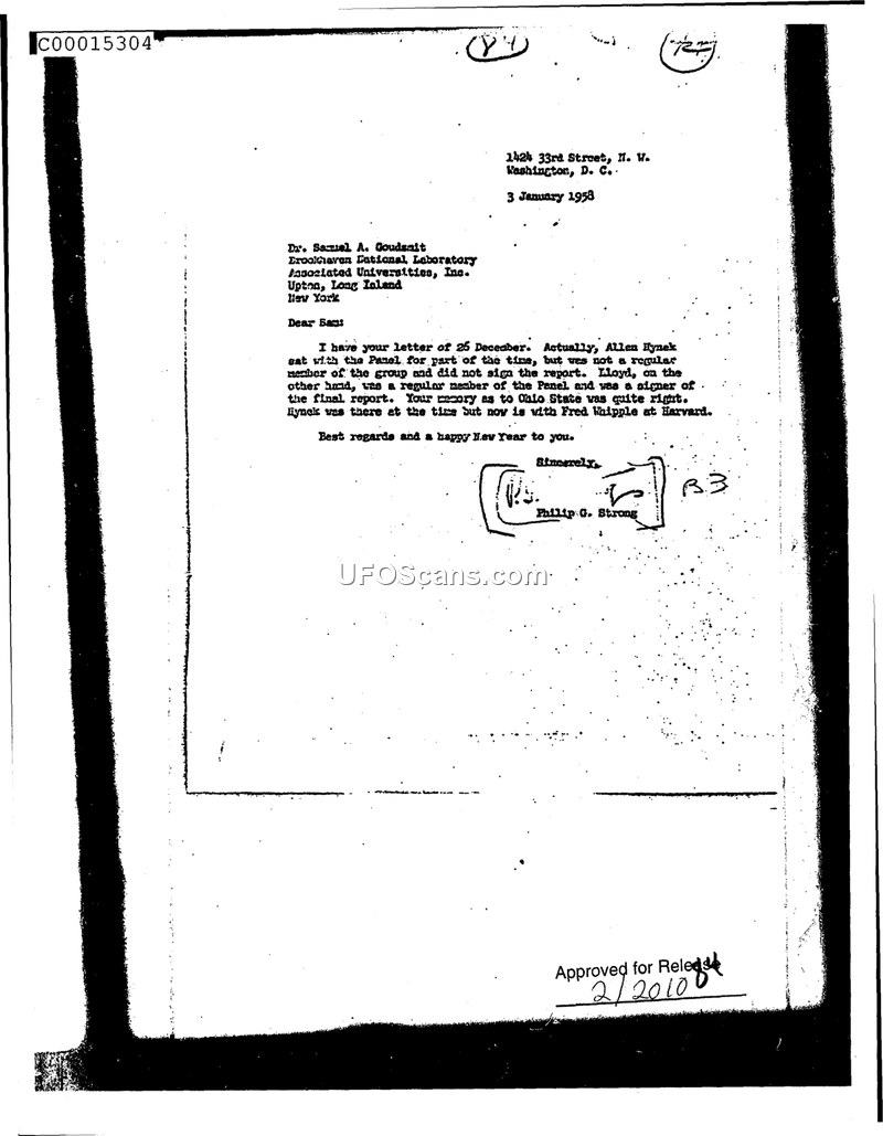 Letter from Philip G. Strong to Dr. Samuel A. Goudsmit regarding Allen Hynek