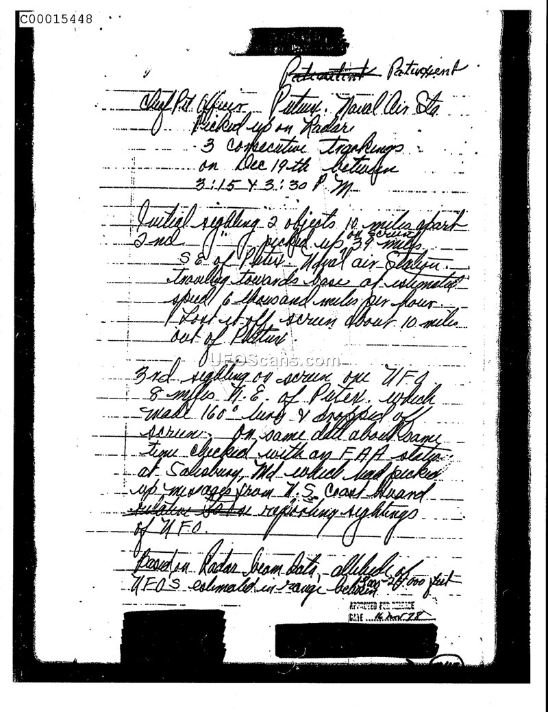 Patuxent Naval Air Station Sighting Report — December 19th