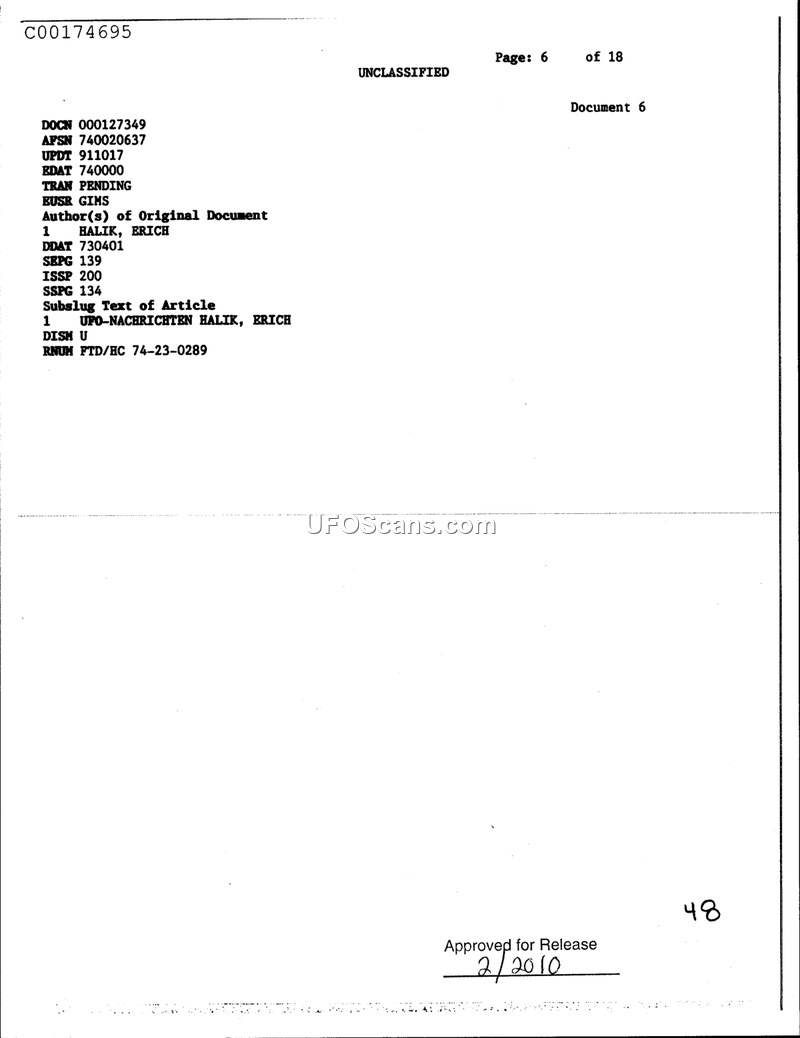 Document 6: UFO-NACHRICHTEN HALIK, ERICH