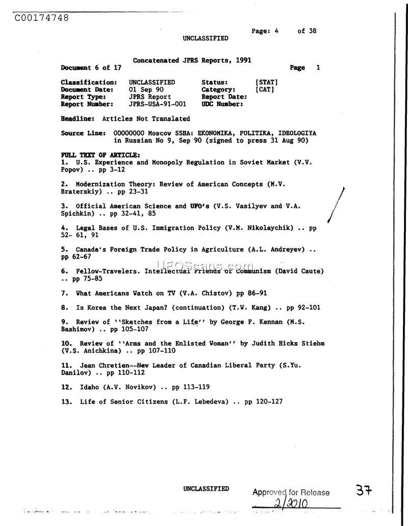 Official American Science and UFO's (V.S. Vasilyev and V.A. Spichkin) .. pp 32-41, 85