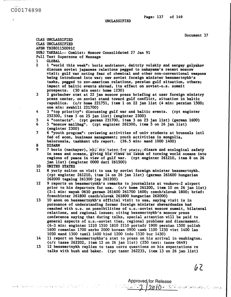 Comlist: Moscow Consolidated 27 Jan 91