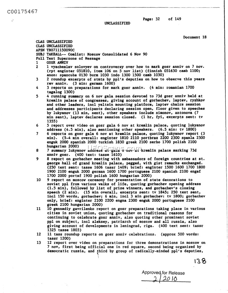 Comlist: Moscow Consolidated 6 Nov 90