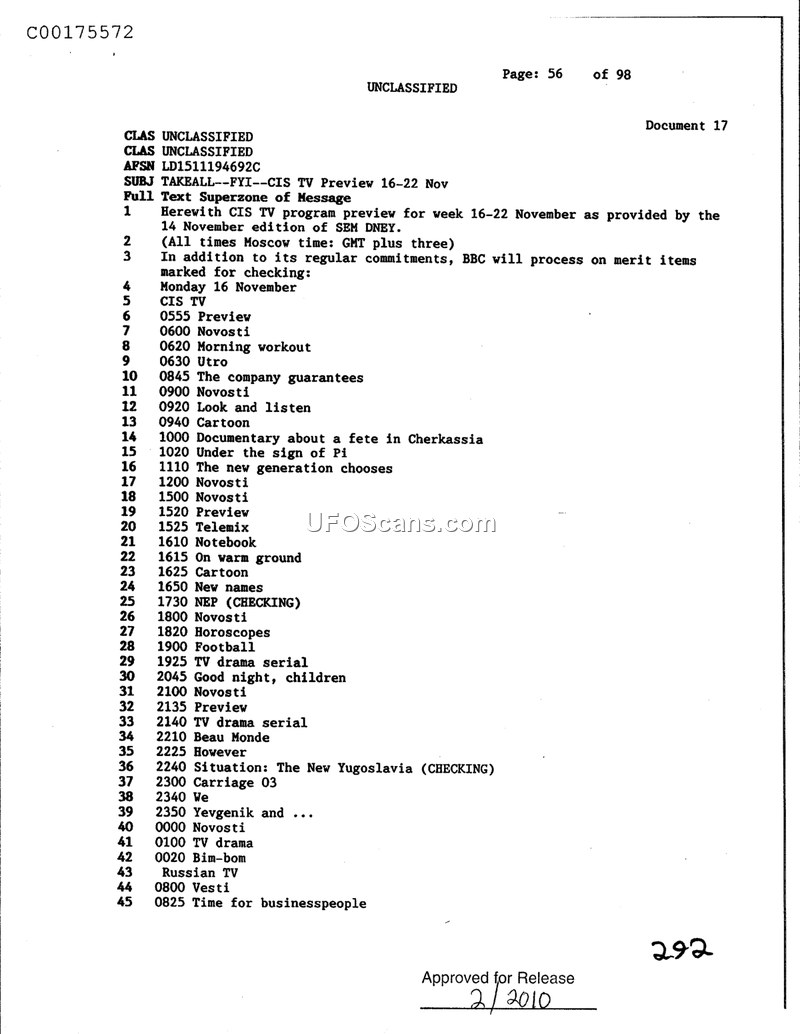 This document provides a television schedule for CIS TV for the week of 16-22 November. It includes a detailed list of programs for Monday, 16 November.