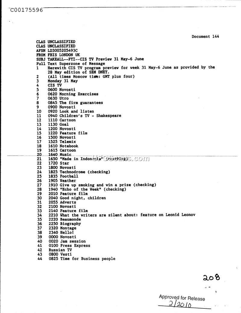CIS TV Preview 31 May-6 June