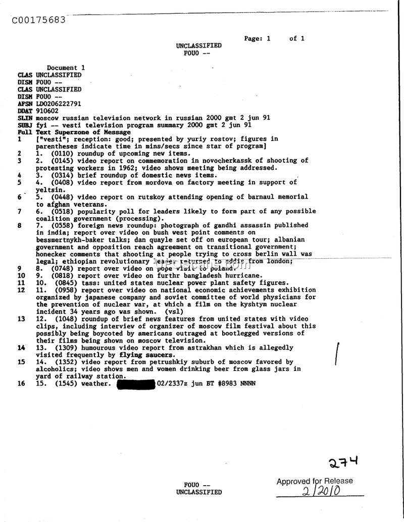 Vesti Television Program Summary - 2 June 1991