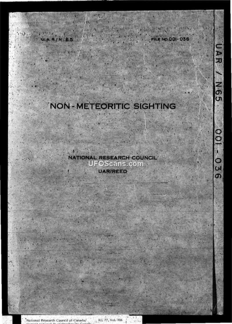 National Research Council Non-Meteoritic Sighting Reports (RG 77, Vol. 306)
