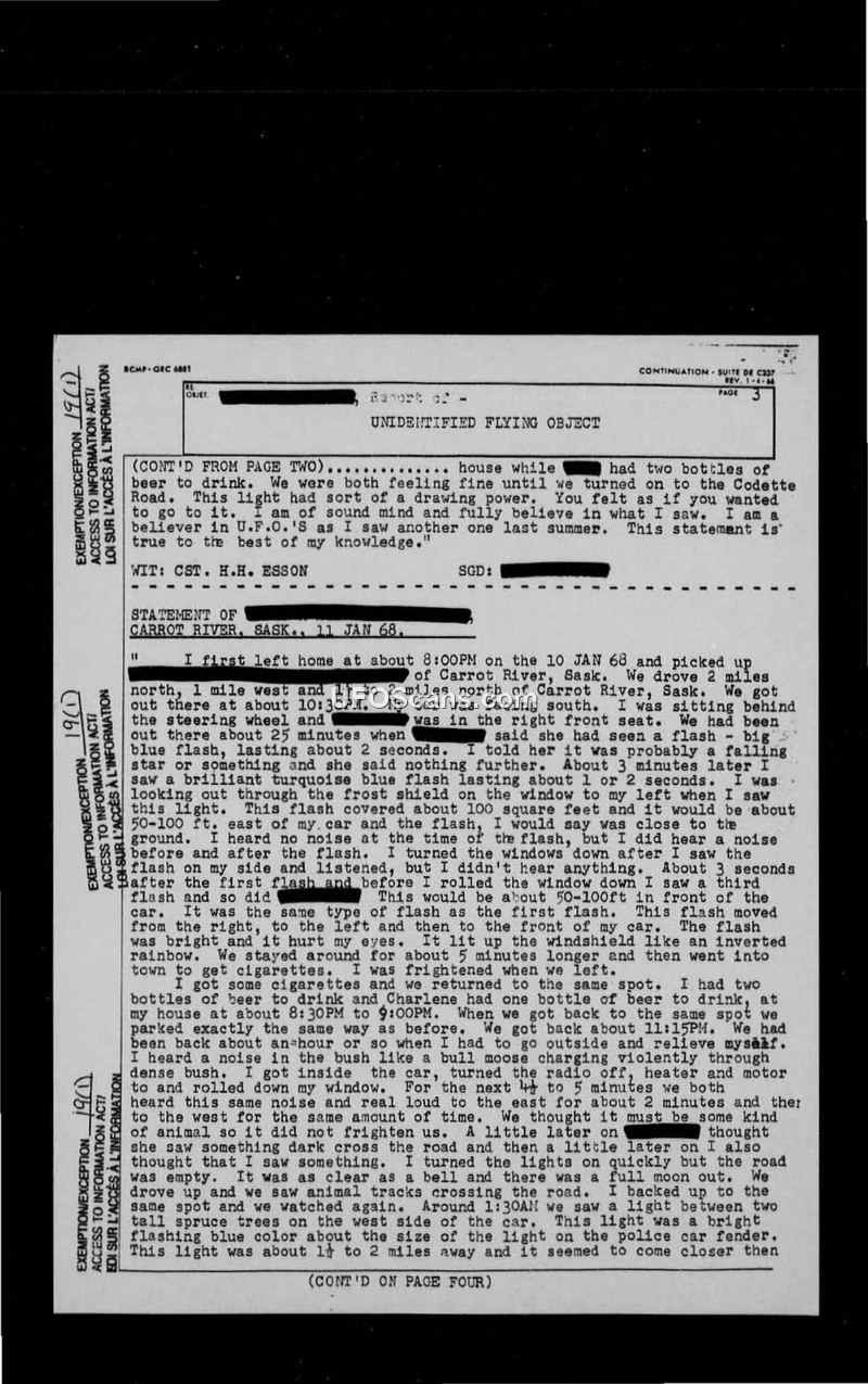 RCMP Unidentified Flying Object Sighting Reports (1967-1969)