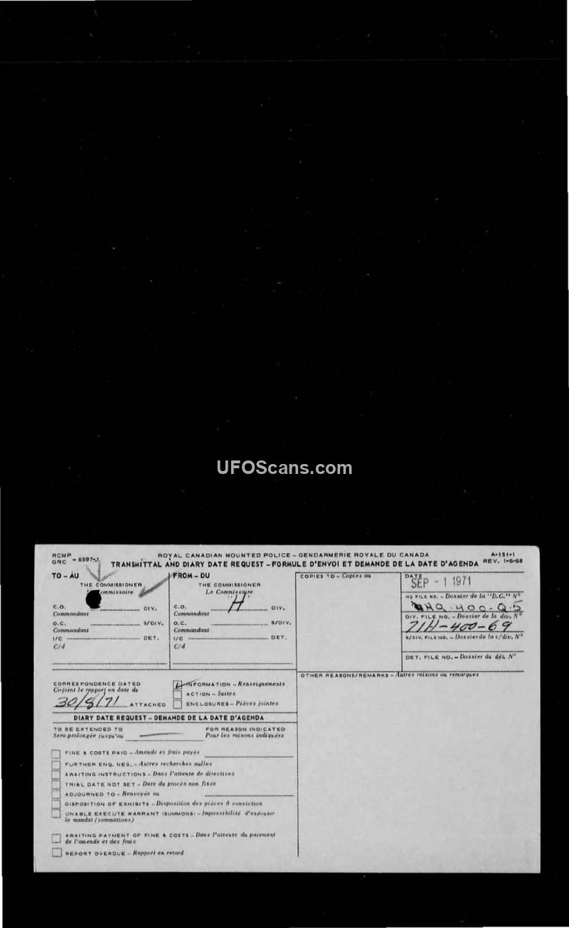 Compilation of RCMP UFO/UAP Sighting Reports (1969-1973)