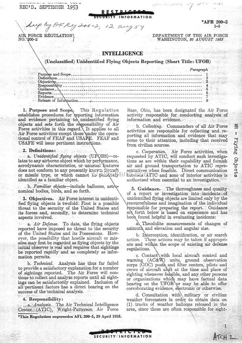 Air Force Regulation 200-2: Unidentified Flying Objects Reporting