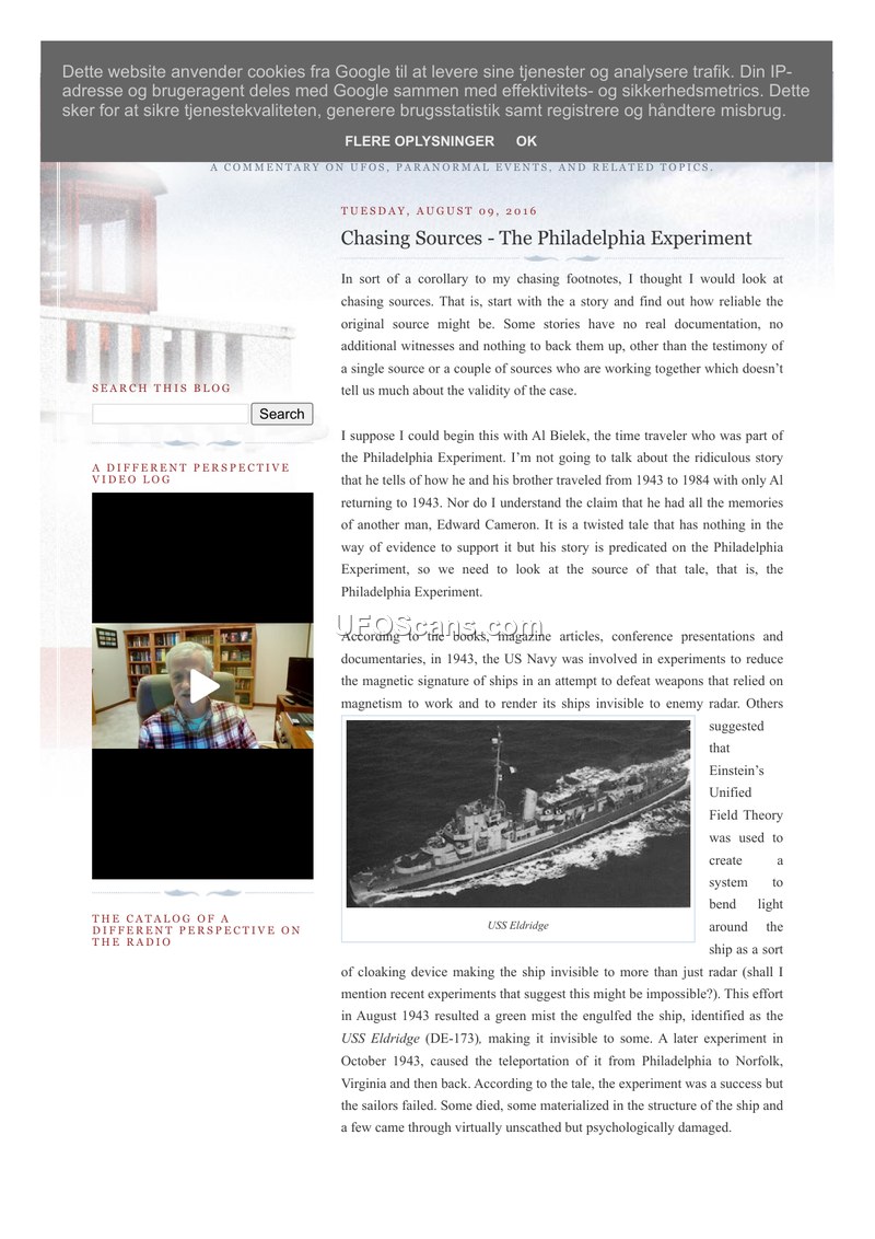 This document is a blog post by Kevin D. Randle, dated August 9, 2016, titled 'Chasing Sources - The Philadelphia Experiment.' The author examines the validity of the Philadelphia Experiment legend by tracing its origins. Randle dismisses the claims made by Al Bielek, describing them as a 'twisted tale' lacking evidence. The author identifies the true source of the legend as a series of letters written by Carlos Allende (born Carl Allen) to the Office of Naval Research (ONR). These letters, along with an annotated copy of Morris K. Jessup’s book 'The Case for the UFO,' were investigated by ONR officers George Hoover and Sidney Sherby. Randle notes that while Hoover and Sherby initially looked into the material, they lost interest once they understood the nature of the claims. The document highlights that in 1972, Allende admitted to Jim Lorenzen at APRO Headquarters that he had fabricated the entire story, providing a signed document to that effect. Furthermore, the author cites a 1980 article by Robert A. Goerman, 'Alias Carlos Allende,' which provided documentation confirming that Carl Allen and Carlos Allende were the same person and that the legend was largely fiction. Randle concludes that the Philadelphia Experiment is a hoax that does not stand up to scrutiny, and that all subsequent tales derived from it, such as those told by Bielek, are equally unfounded.