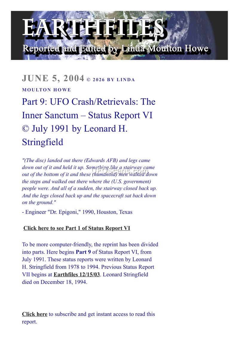 Part 9: UFO Crash/Retrievals: The Inner Sanctum – Status Report VI