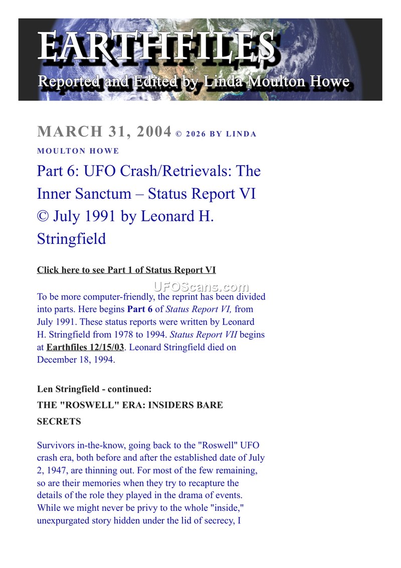 Part 6: UFO Crash/Retrievals: The Inner Sanctum – Status Report VI