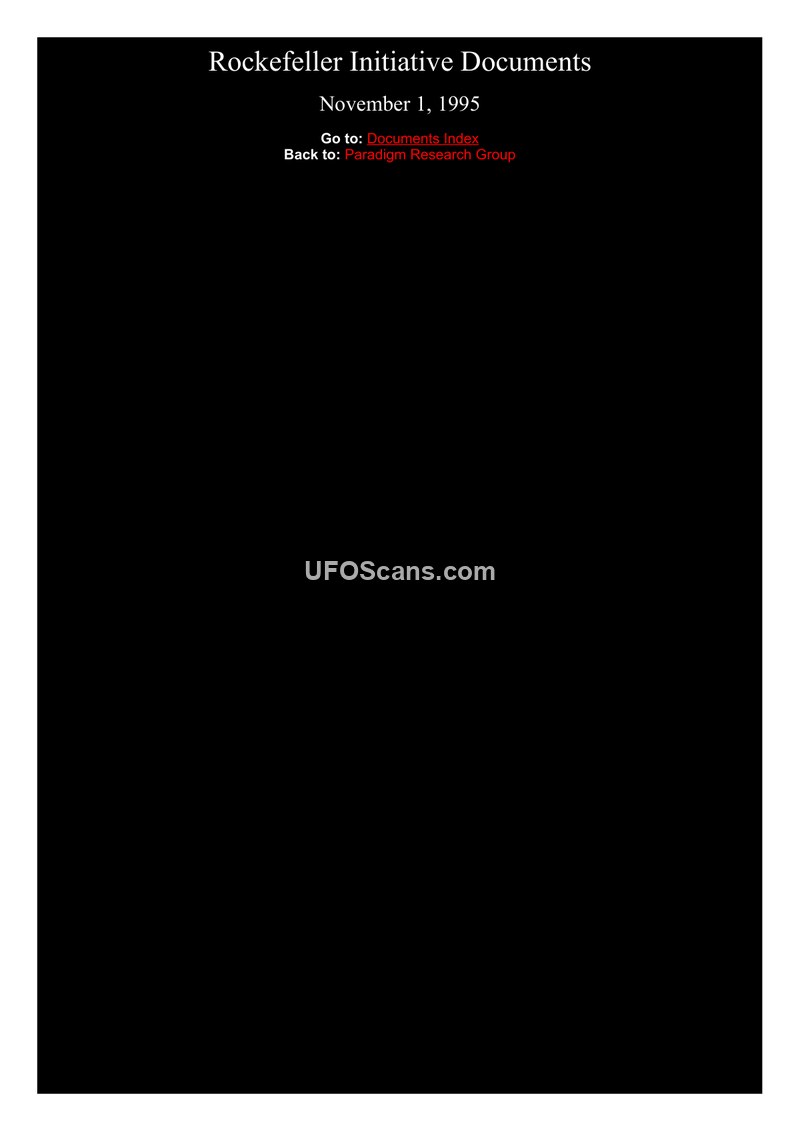This document consists of a faxed cover sheet and a draft letter dated November 1, 1995, from Laurance S. Rockefeller to President William J. Clinton. The correspondence advocates for the lifting of government secrecy regarding extraterrestrial intelligence (ETI) and Unidentified Flying Objects (UFOs). Rockefeller, citing his interest in the relationship between science and religion, requests that the President use the ongoing government classification review to address the withholding of information on UFOs. He argues that the public believes federal agencies possess substantial information on the existence or non-existence of UFOs that is being unnecessarily withheld under the guise of national security. Rockefeller proposes three specific actions: prioritizing the review of ETI and UFO information, appointing a coordinator for this information (suggesting Science Advisor Jack Gibbons for the role), and granting amnesty to federal employees who possess information on ETI or UFOs. The document includes an enclosure titled 'UNIDENTIFIED FLYING OBJECTS BRIEFING DOCUMENT: THE BEST AVAILABLE EVIDENCE,' presented by CUFOS, FUFOR, and MUFON.