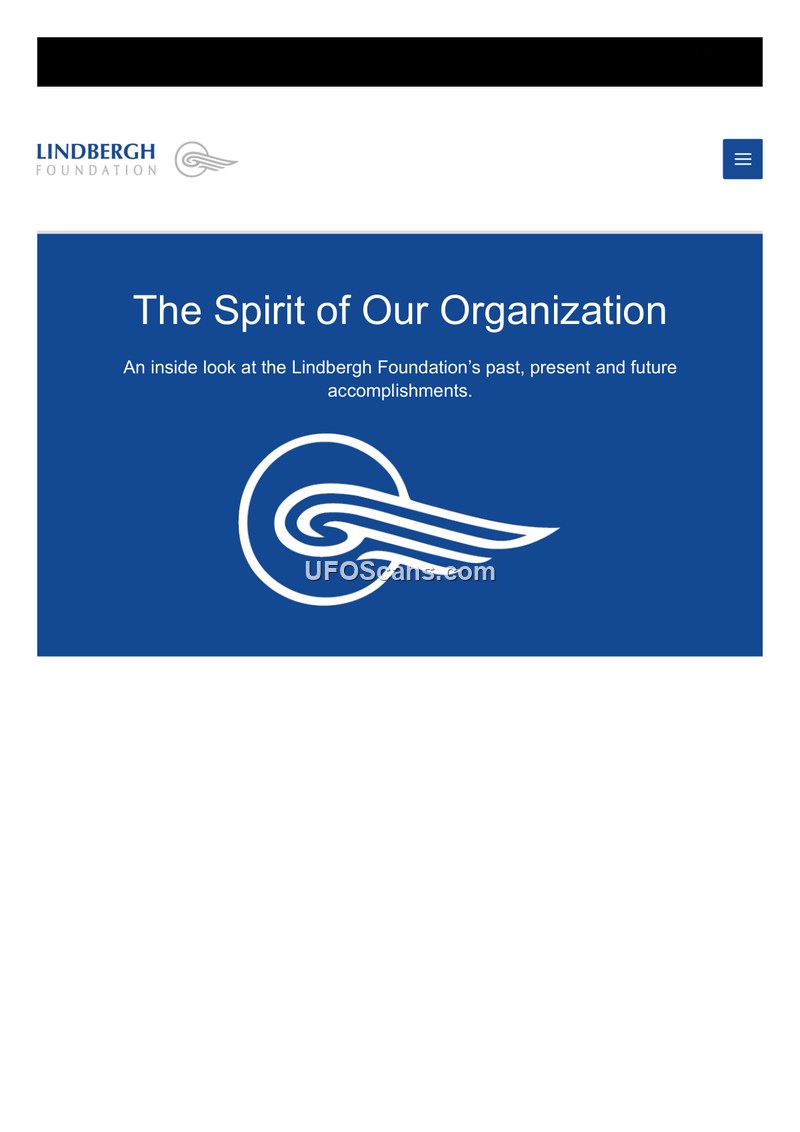 The document provides an overview of the Lindbergh Foundation's mission, leadership, and historical context. It also includes archival notes linking the foundation's founders and former leadership to historical UAP-related investigations.
