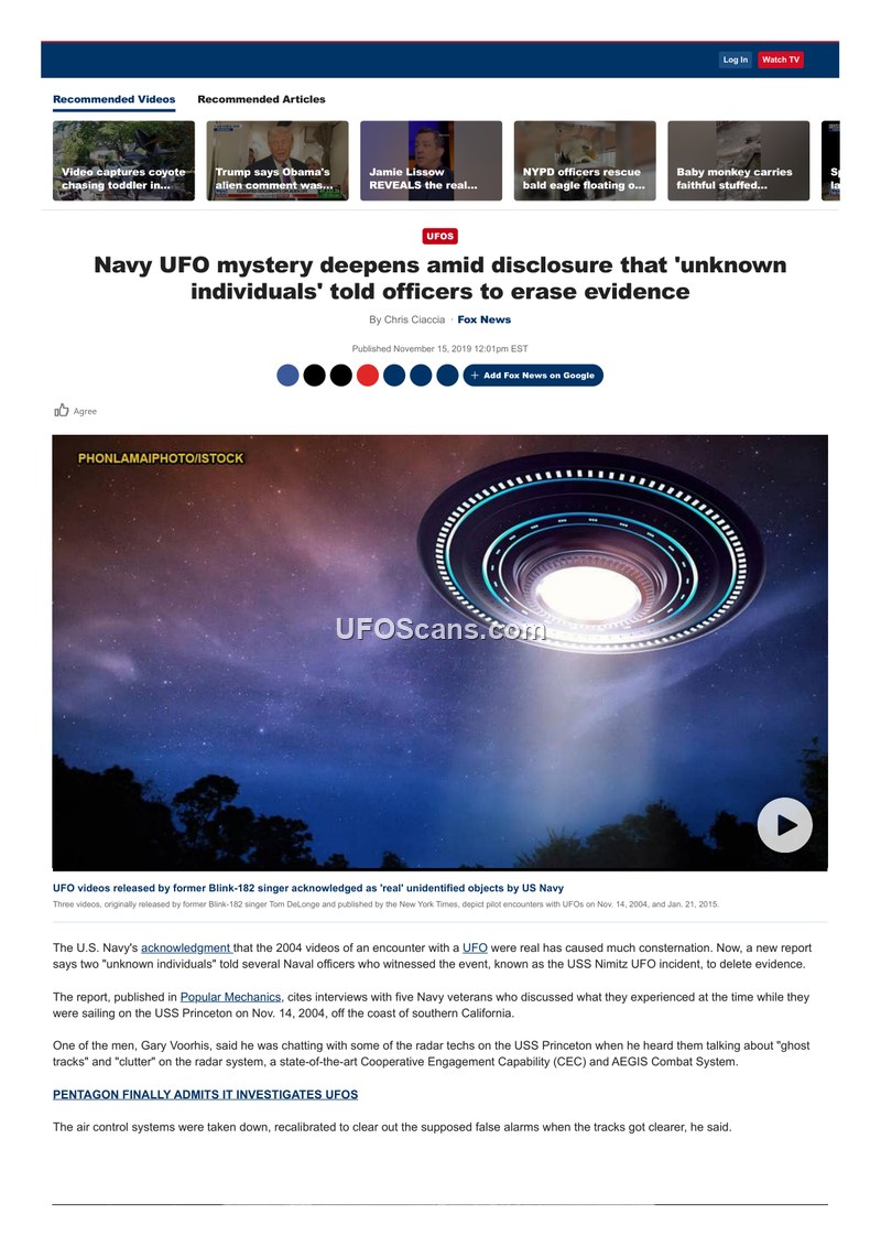 Navy UFO mystery deepens amid disclosure that 'unknown individuals' told officers to erase evidence