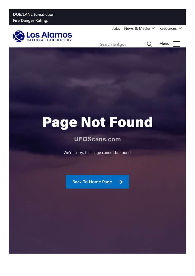 This document is an archived record from the UAP Document Archive, identified as Case #931. It contains a reference to a Los Alamos National Laboratory web page that is no longer available, as indicated by a 'Page Not Found' error message. The primary information provided within the archive context is a note stating that in 2018, Triad National Security LLC became the manager and operator of Los Alamos National Laboratory. No further information regarding UAP or related phenomena is present in the document.