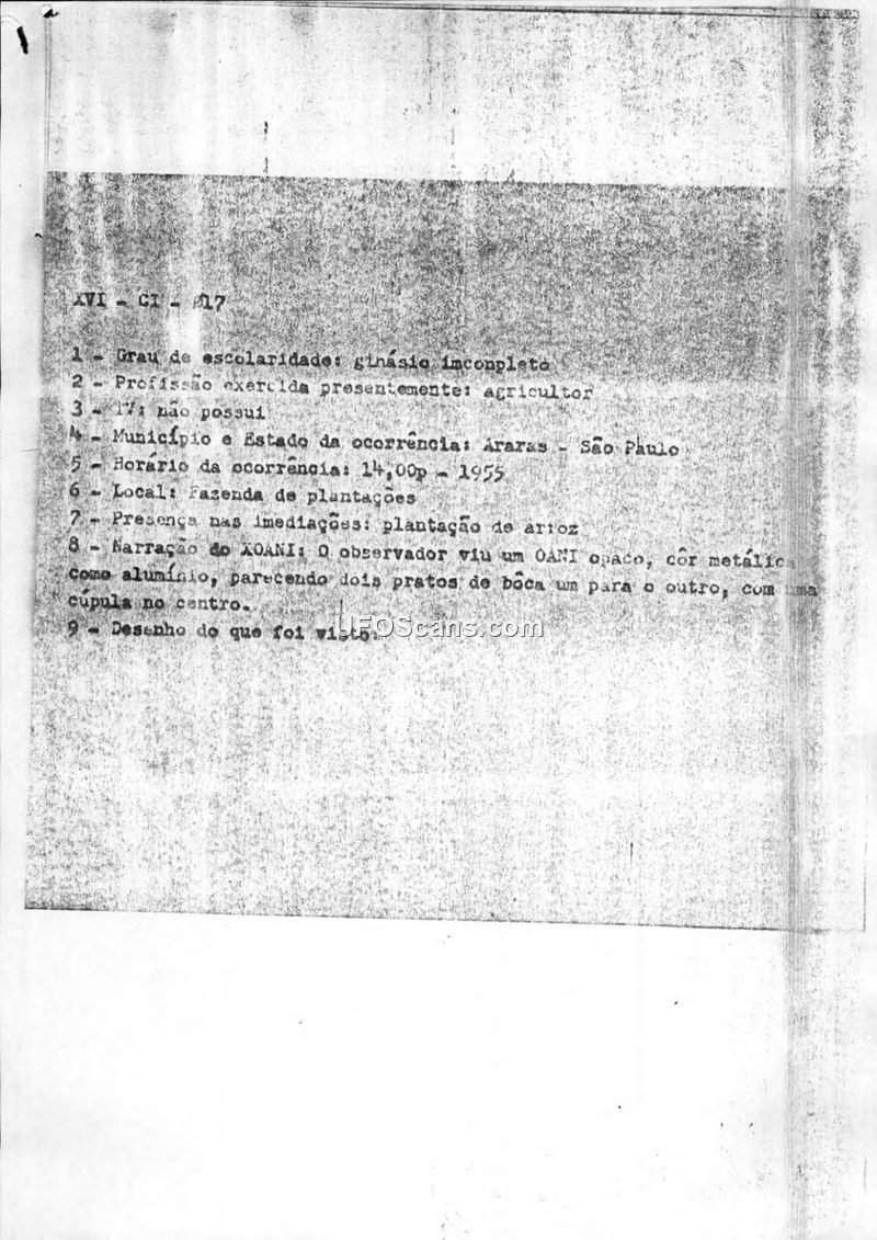 Sighting Report XVI-CI-17 — Araras, São Paulo, 1955