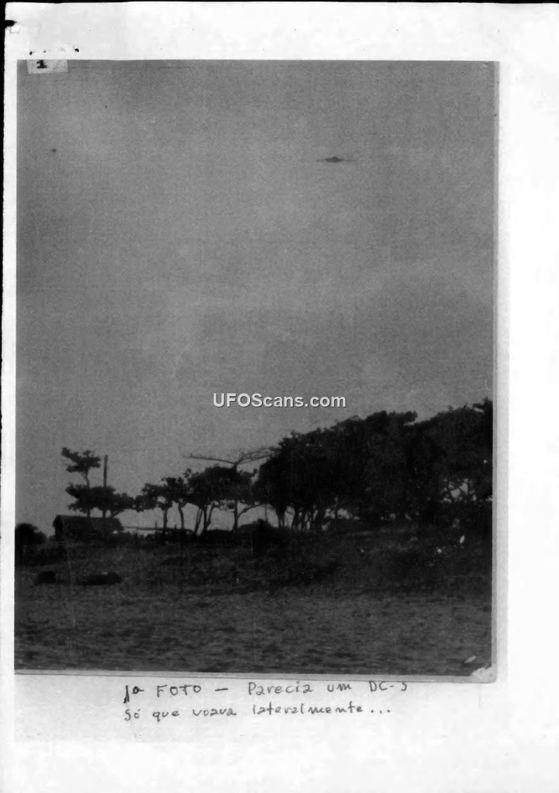 This document provides a technical analysis of UFO photographs taken by Colonel João Adil de Oliveira's team at Trindade Island in 1958. It includes geometric reconstructions of the objects' flight paths and altitudes.