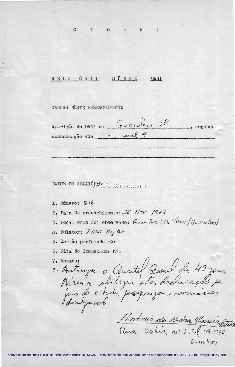 Relatório Sobre OANI — Guarulhos, SP, 19 de Novembro de 1968
