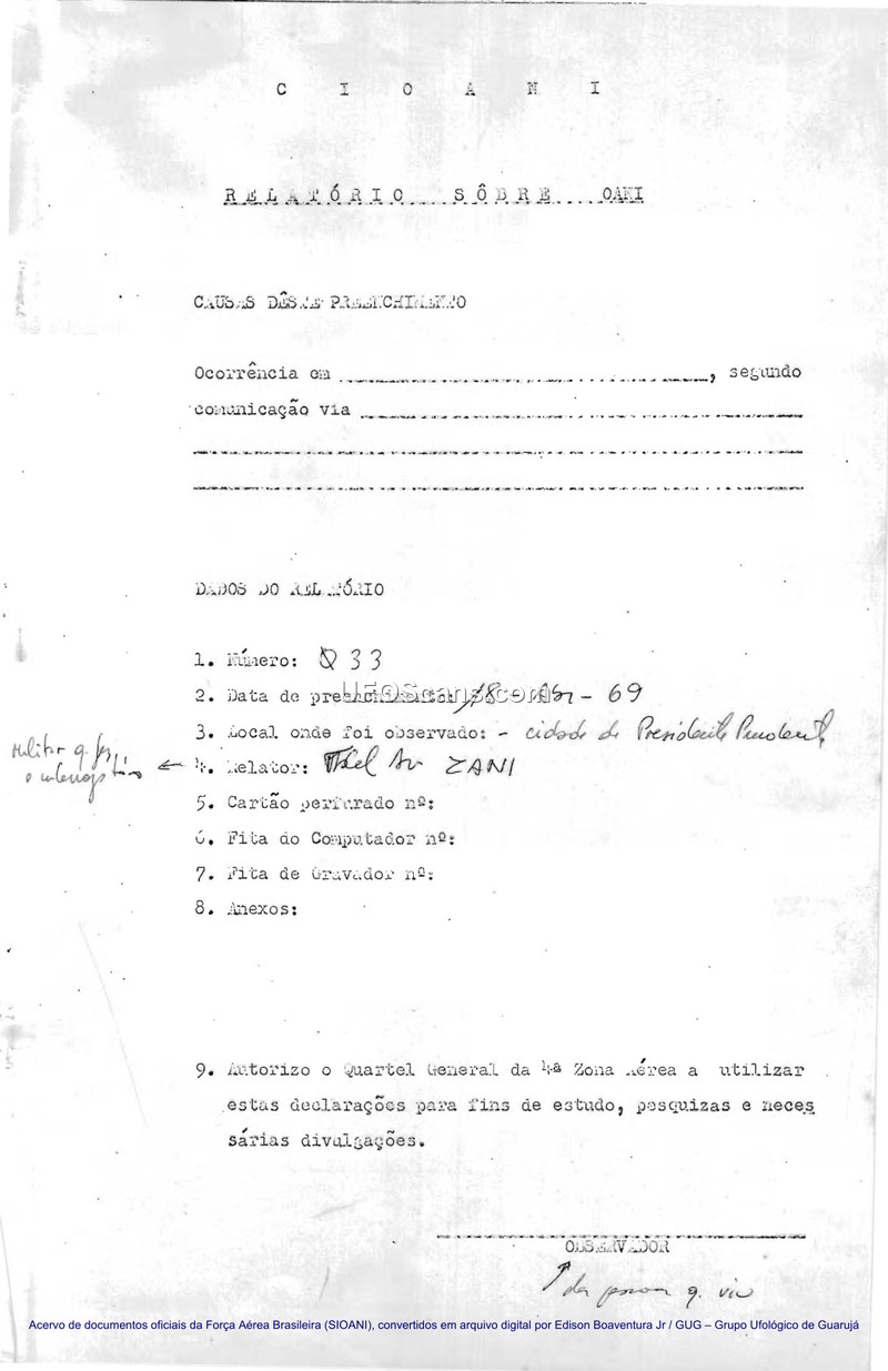 Relatório Sôbre OANI (UAP Report) — Incident #33, Presidente Prudente, 1969