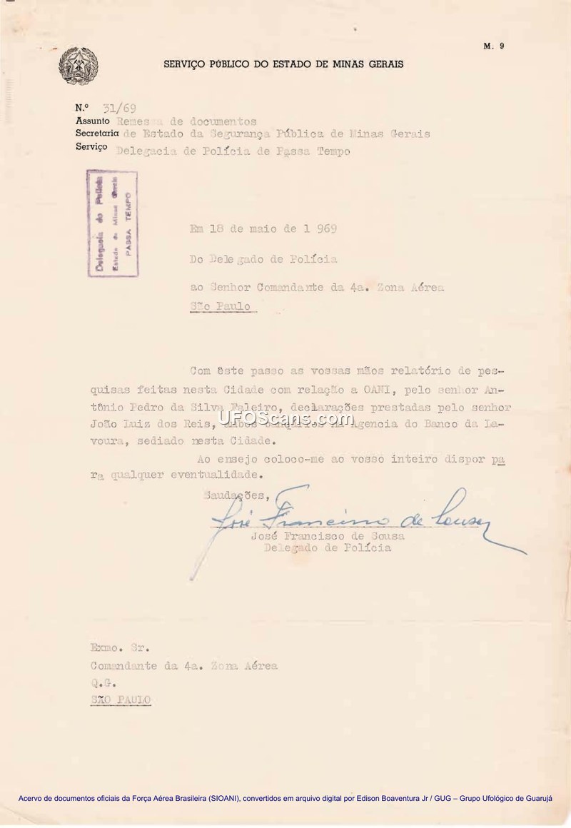Report on OANI Sighting in Passa Tempo, Minas Gerais, February 1969