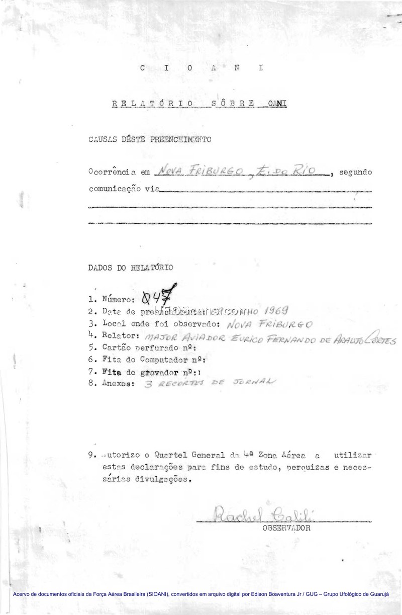 Relatório Sobre OANI — Nova Friburgo, 1969