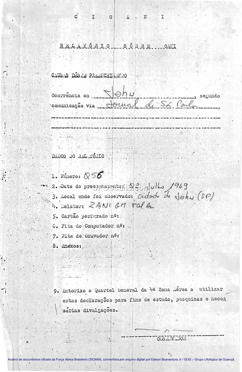 Relatório Sôbre OANI — Jahu, São Paulo, 1969