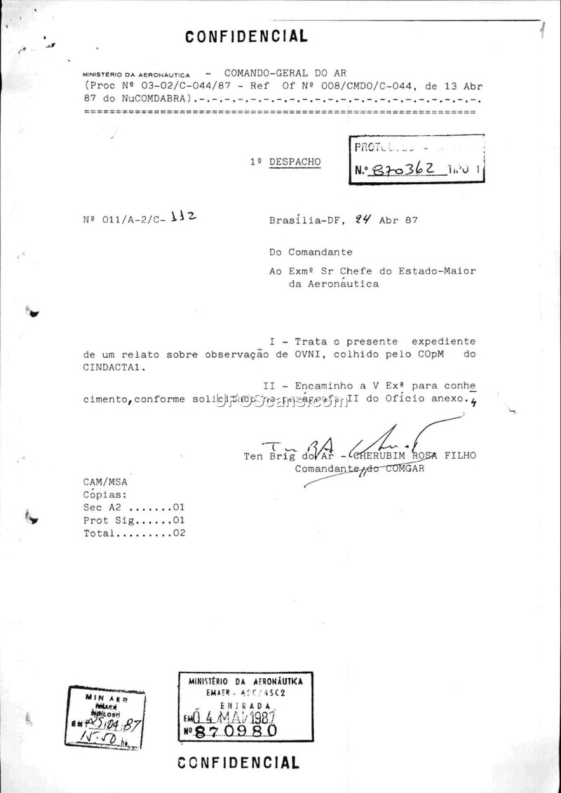 Relato de observação de Objeto Voador Não Identificado (OVNI) - 1987