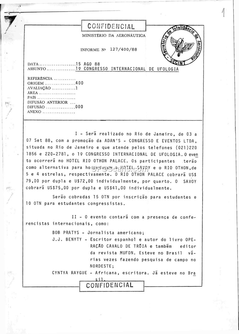 Informe Nº 127/400/88: 19º Congresso Internacional de Ufologia