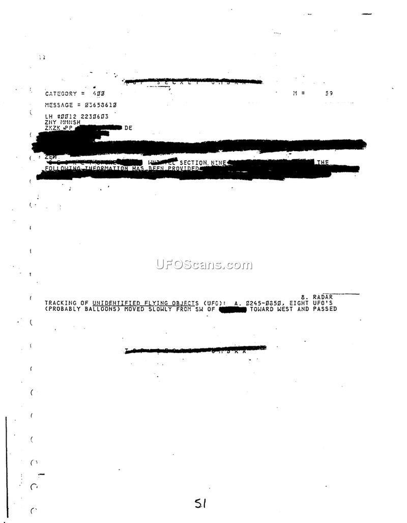 The document consists of a series of intelligence reports detailing radar tracking of numerous unidentified flying objects, most of which are assessed as likely being balloons.