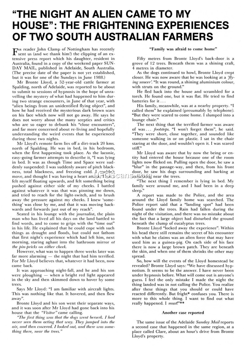 THE NIGHT AN ALIEN CAME TO MY HOUSE: THE FRIGHTENING EXPERIENCES OF TWO SOUTH AUSTRALIAN FARMERS